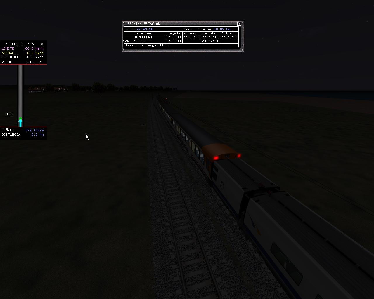 He aquí mi quinta actividad “potable” para publicar en TrenSim. Es una actividad con una base real, se puede decir que es semireal. Se trata de llevar el estrella “Costa Brava” Portbou – Madrid Chamartín entre las estaciones de Barcelona Sants y Reus. Seguimos los horarios reales, sacados de http://www.renfe.es. Al haber viajado en este tren en diciembre, me permite reproducir, dentro de las limitaciones del simulador, la “ardua” tarea de llegar hasta Tarragona en este tren, cuando hagáis la actividad me comprendereis. Quizás un buen libro será nuestro mejor aliado para realizar esta actividad. El tráfico que vemos en la ruta es semi-real, algunos trenes circulan en realidad a las horas puestas (o van con retraso), no obstante he metido más tráfico para hacerla más interesante, y al ser nocturna, más mercancías. Nada más que añadir, ¡buen viaje a todo el que la haga!.