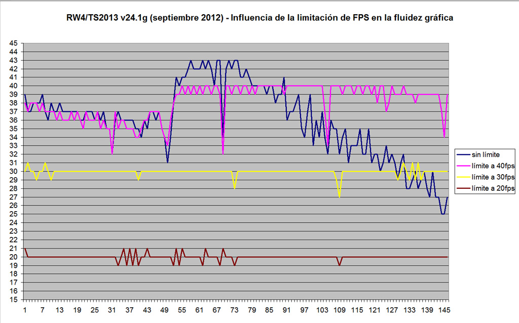 Así que he estado investigando en la limitación de fps y su efecto. Os muestro el gráfico, y dejo que vayáis sacando conclusiones. Os expondré mi punto de vista en otro momento.