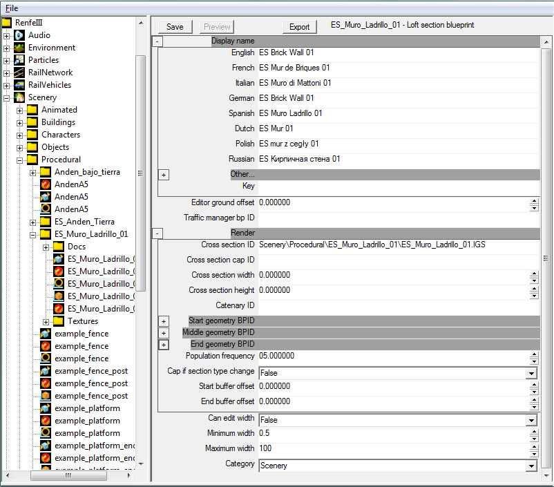 1. Objetos proceduralesUn objeto procedural es un elemento 3D del cual tan solo se informa al simulador de su perfil, procediendo el motor de la simulación a generar el volumen del objeto por extrusión de dicho perfil, ajustando dicho desarrollo a un perfil recto, curvo o mixto que se determina en el momento de situarlo en una escena del simulador (o lo que viene a ser una ruta).