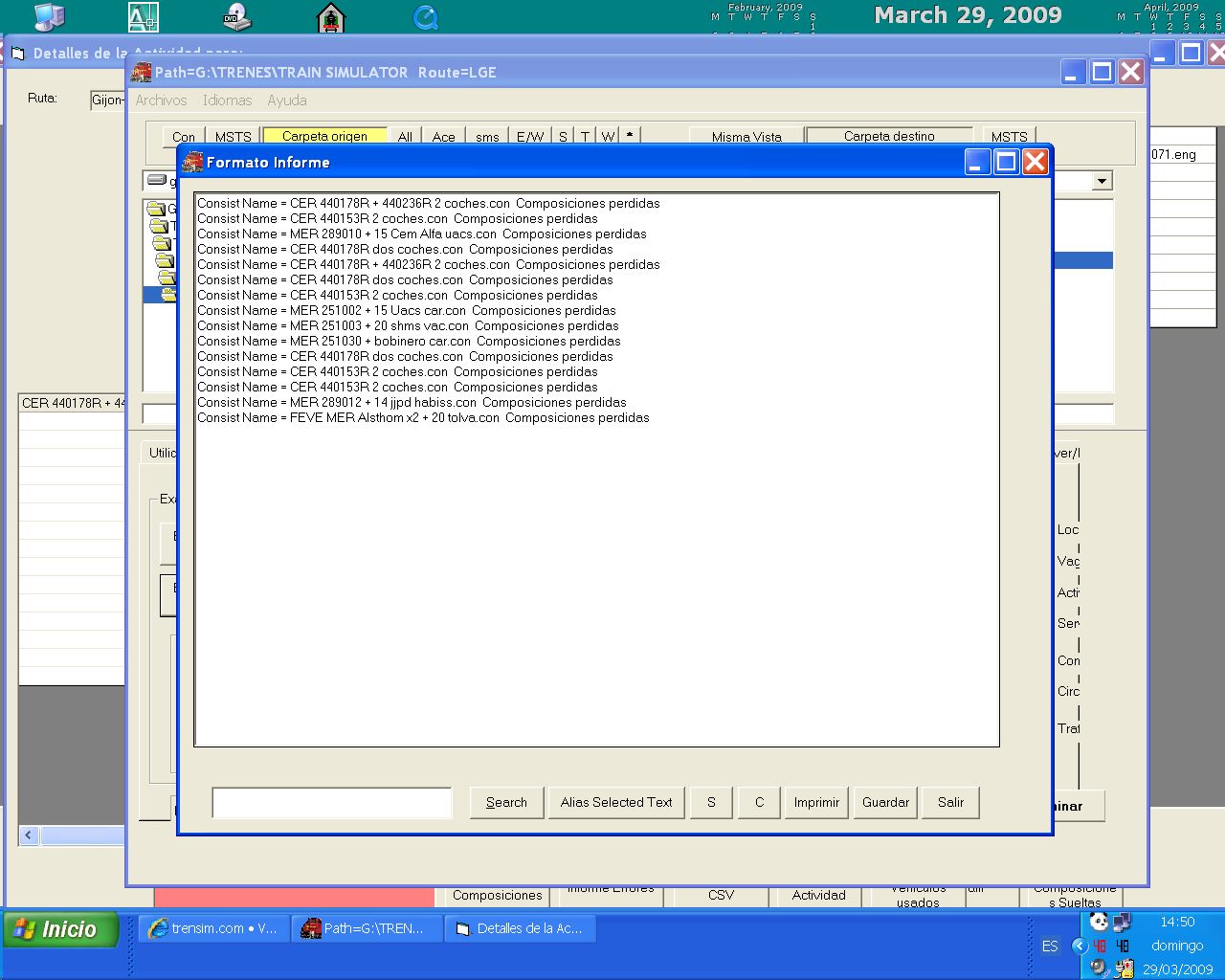 Es necesario el parche MSTS-bin, en alguna de sus últimas versiones. Todo el material está disponible en Trensim, con excepción de dos archivos que los habituales de mis actividades ya tendreis desde hace tiempo. Al haber circulaciones por las vías de FEVE, imprescindible también descargarse material de vía estrecha, a saber: el MAN de pizias, la Alsthom de javierfl y las tolvas de Sierra. A pesar de que las vías de FEVE están electrificadas, al no disponer de material eléctrico, el servicio de viajeros se cubre con los MAN. Miel sobre hojuelas :mrgreen: