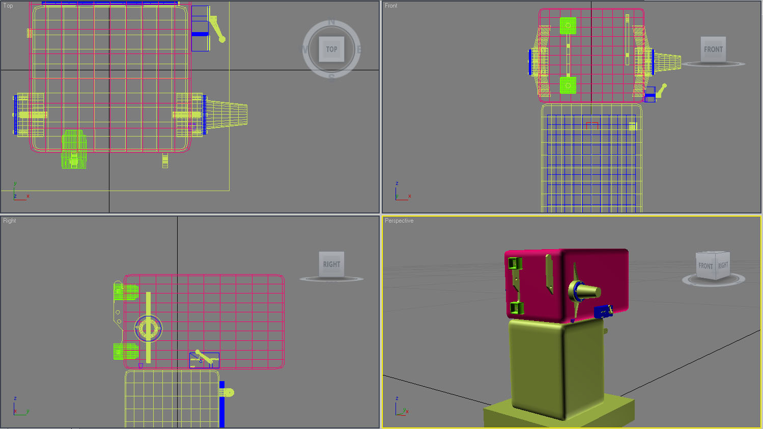 Así que ha hacerlo de nuevo :lol:, pues que se le va a hacer, espero que solamente te refieras al objeto superior, vamos que solo es una caja con el modificador meshsmooth, porque todo lo demás está suelto y me imagino que se podrá utilizar :?
