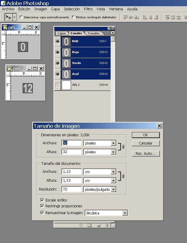 - Creo 13 aces, denominados primarynumber_0.ace a primarynumber_12.ace, con los números a 12 que coloco en la carpeta Textures del modelo. Son para referencia y merece la pena poner texturas de números para no liarse luego. Creo que aquí la denominación primarynumber_o, etc... sí que es crítica. Son como se muestra en la imagen adjunta, y se basan en los que existían en RailSimulator para esta función que en RW no encuentro, aunque han de estar por algún sitio supongo. Estos mapas son texturas de 32x32, RGB, de 32 bits, es decir con canal alpha, éste en blanco. Ya digo que son necesarios pero sólo como referencias para crear el plano y mapearlo.