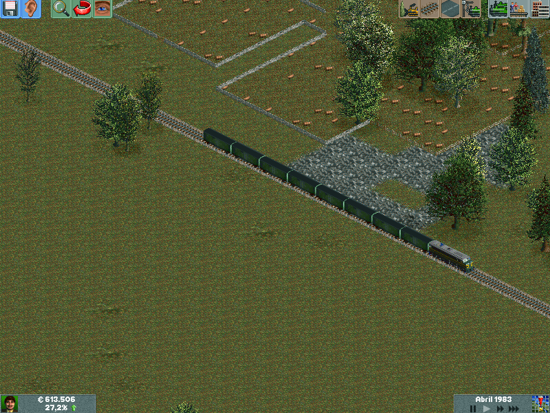 Os explico, me he creado un mapa totalmente llano, con muchas industrias. Para ver hasta donde podría llegar y a cuantos trenes podría hacer jaja. Lo empece en el año 1995 justo, con ciudades pequeñas apenas de 500 habitantes. Ahorra llevan algunas mas de 60.000 habitantes, y lógicamente las estoy encerrando para que no crezcan porque madre mía. Llevo unos 130 trenes, 14 aviones y unos 20 tranvías.