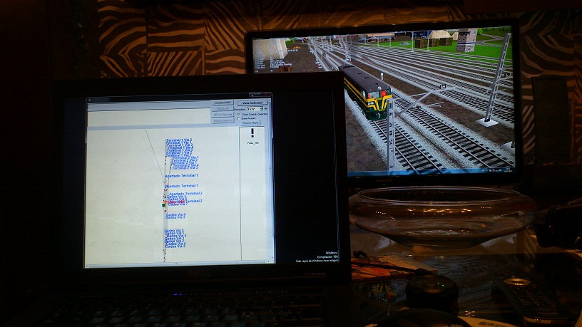 Todas las practicas las hago yo con mi propia maquina, controlando desde el pc las señales y desvios(yo CTC para mi mismo) y a la vez, pruebo la funcionalidad de las mismas,(a traves del TV)
