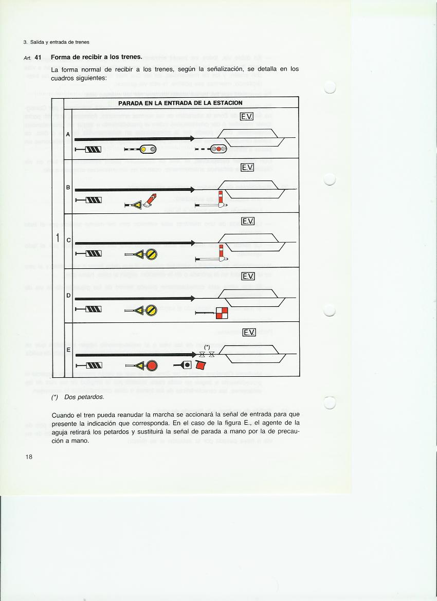 Aquí la presentación es por la forma de recibir al tren, no por la forma de las señales, con lo que es más didáctico, a parte de ser mejores los esquemas, como corresponde al avance de las tecnologías gráficas de 30 años. Pero no baja tanto al detalle de poner la señal de paso o de parada a mano para la parada accidental por el jefe de estación en el eje del edificio de viajeros.