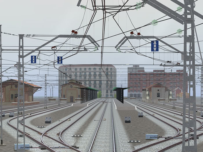 Se tiende la via con propiedades eléctricas por catenaria y se pegan los cables después siguiendo la linea de la vía. De esta forma las catenarias pueden quedar más realistas, puesto que podríamos tener la opción de doblarlas en los postes.