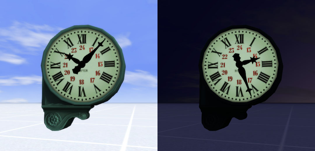 Además el reloj analógico del RW parece pensado para un reloj de pared, con una sola esfera, porque sólo incluye animaciones para las manecillas de una cara, y, aunque ambas caras del reloj marcan la misma hora, el movimiento de las manecillas es justamente contrario... pero bueno, al final algo ha salido (incluida la iluminación nocturna de la esfera).