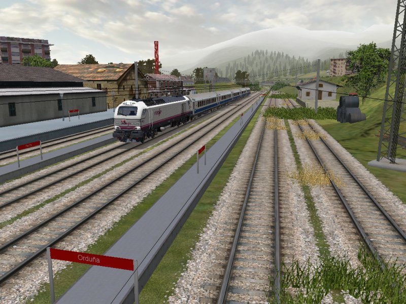 Buenas tardes! mis otras rutas?? :lol: qué mas quisiera! mi "catálogo" actualmente se ciñe a una sola ruta inacabada, véase "Cercanías Bilbao". Aprovecho la intervención para mostrar de nuevo Orduña un poco más finalizada. He puesto un edificio anexo más parecido al real y al fondo podemos por fin distiguir el Txarlazo con la Virgen de la Antigua en la cumbre. Gracias a las limitaciones de MSTS, he tenido que trucar este efecto. El Txarlazo está como 500 metros más cerca que en la realidad, para que MSTS no elimine de la vista la montaña justo en cuanto entramos en Orduña desde Miranda, con lo cual el cuadro desluce considerablemente (verdad Jokin? :wink: ) Tengo problemas para reintroducir ahora las montañas distantes, por lo que creo que se van a quedar pendientes, aún así para mostrar la Virgen en el monte no valen las montañas distantes, bueno, no os enladrillo más!