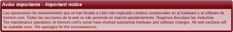 The maintenance operations on trensim.com's server have involved substantial hardware and software changes. All web sections will be avalaible soon. We apologize for the inconveniences.