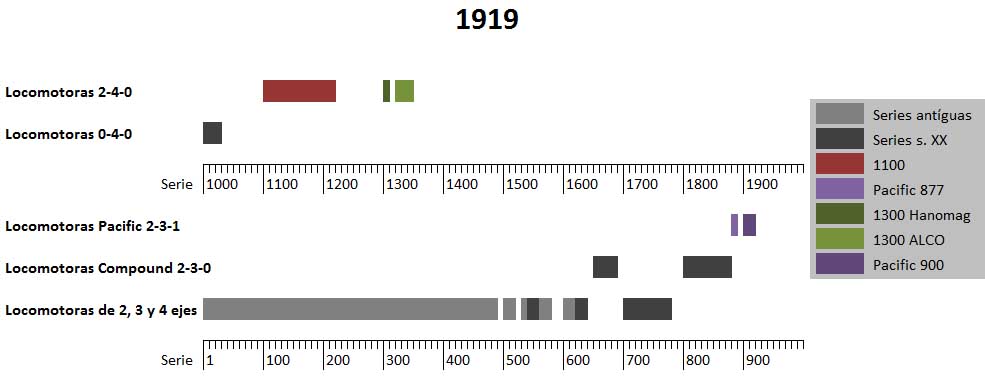 Disposición de las locomotoras de M.Z.A en 1919.