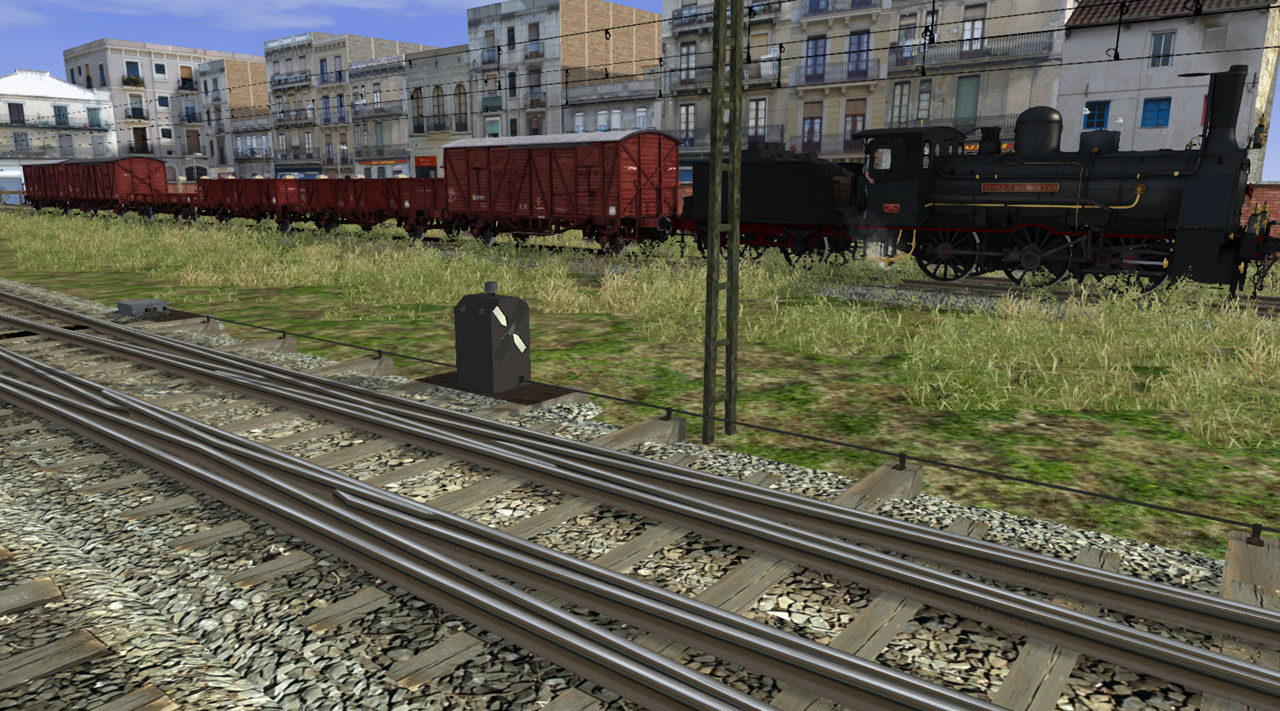 Pero como suelo comentar "esperar a verlas en vuestro simulador" porque en capturas todo parece más bonito. Y en el fondo técnicamente tampoco son nada del otro mundo, pues todo lo que implementan ya se ha visto en otras vías para este simulador, salvo quizás la numeración dinámica de las agujas (y eso también está en otros simuladores). Sólo he pretendido poner a disposición de los ruteros unas vías ibéricas que aporten ambientación local a un bajo coste para el motor gráfico (y esto último se paga en pérdida de realismo).