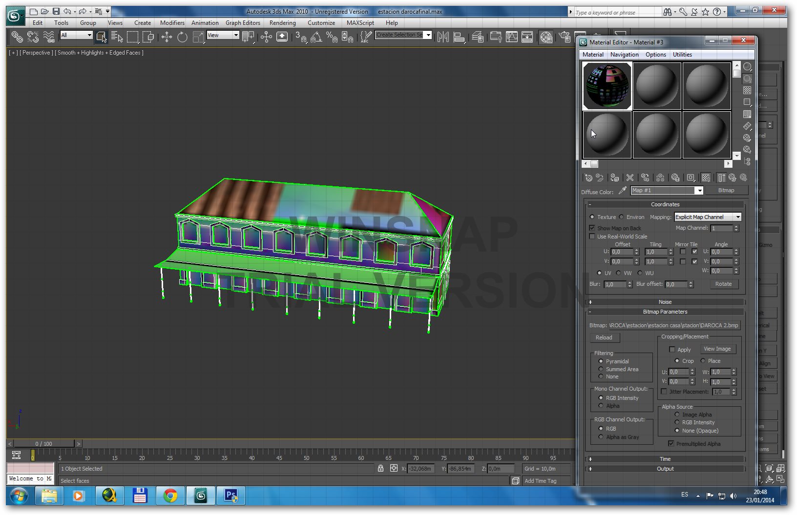 Estoy con un edificio para railwokrs, que mapeo con uvw unwrap. Coloco las texturas con photoshop en formato bmp